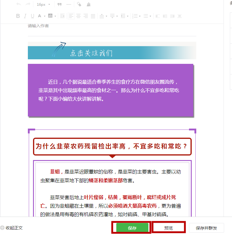 (1)编辑完内容后点击“保存”,然后点击“预览”